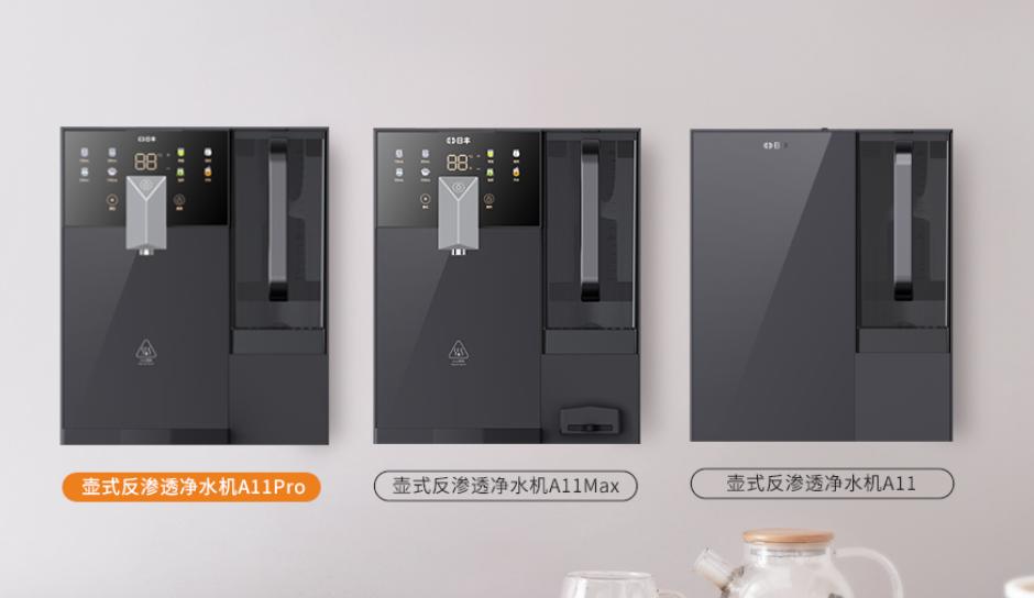 產品:壶式反融于净化水的机A11Max 企业产品讲述: 满足传统艺术纯水器6大难点 1:多股油滤换芯贵 2:水净化流程嗡嗡声大 3:小龙头品牌接水慢 4:靠泵制水易于坏 5:端锅取水太大 6:厨下布置卫生情况差